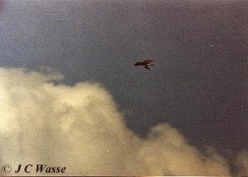 Wow! I've always managed to miss this species on my old local patch in the Spring and Autumn. I was just about to leave before this one stopped off for a take-away. From its plumage, it was thought to be an adult female. I only managed to get these photos after a frantic change of film. Fortunately for me, it took the bird three attempts to catch a fish. This was quite literally a take-away. The bird flew off so high, that it was a dot at 40x magnification through the telescope. The bird stayed for five minutes, but luckily a few birders were there to witness its fishing prowess.