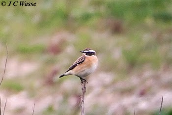 Showing well with 3 Wheatears on the wires along the path to 'Rainham Ridge'.