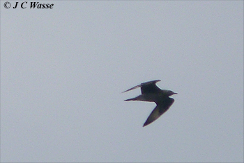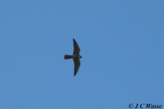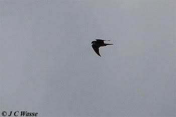 2 birds showed well in the afternoon hawking insects over the marsh. At least another 3 moved over at great height with 2 Common Buzzards.