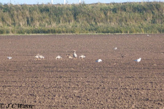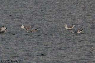 Record shots of a moulting adult amongst a couple hundred LBB Gulls resting on the reservoir (and in nearby fields).
