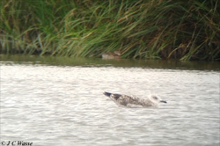 A 1st summer bird showing on the Thames just east of the RSPB centre.