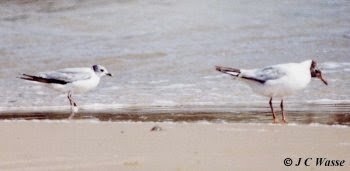 The East Cosast Mecca for Med Gulls. Up to about 40 birds were reported mid- August on the seafront. I came across about 20 in two visits. Five birds were colour ringed. GREEN RINGS: 63U, 3PC0 and 25K; WHITE RINGS: 12W,& 3AT. A colour ringed 1st summer GBB Gull was present sporting an orangering with green lettering 0952. It was rung at Gerrards Cross, UK in January 2004.