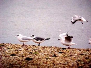 A good spot for "Ring-bills". This long-stayer is nearly in 2nd winter plumage. Good comparison here with a Herring Gull (right).